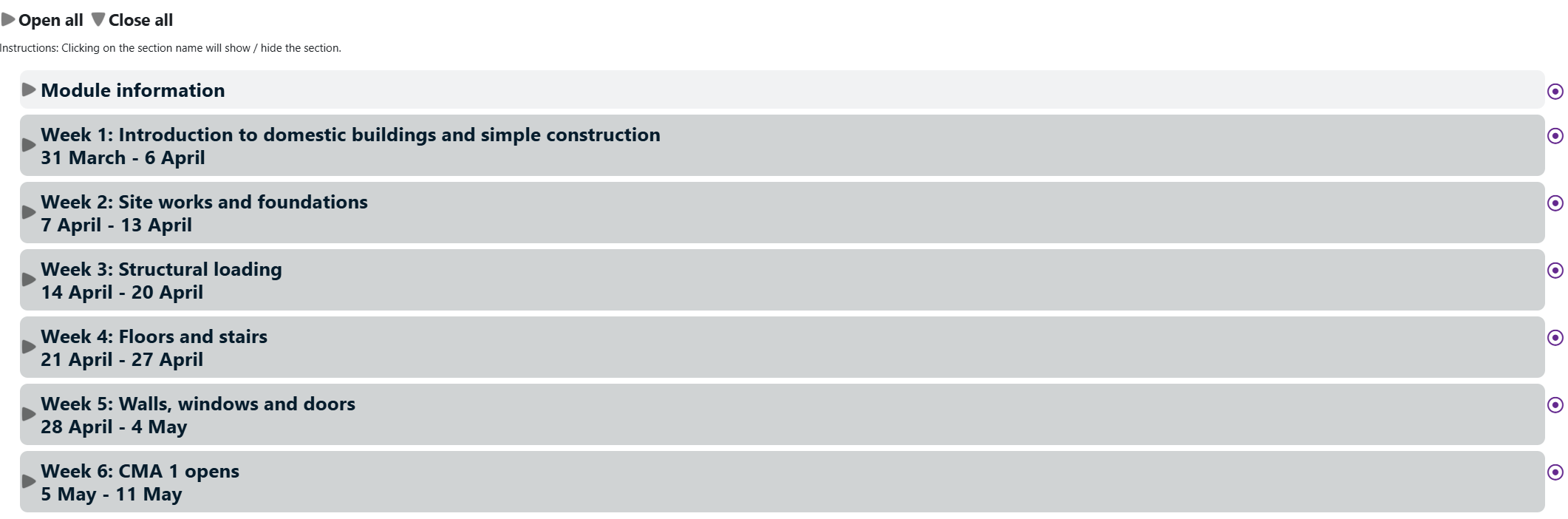 Each of the modules you are studying will have its own module page. Here, you will find a week-by-week breakdown of learning and tasks. This will include live webinars (which are recorded for you to access on-demand), webinar slides and transcripts, forums for you to ask questions and discuss your learning, learning resources (which can be requested in various formats), and formative learning tasks such as quizzes to test your knowledge.